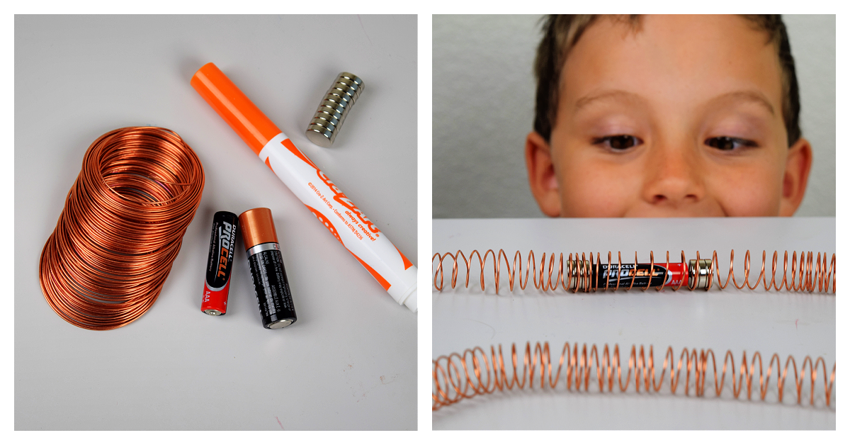 Science Experiment For Kids- Supplies- Copper Wire, batteries, marker, magnets- kids activities blog
