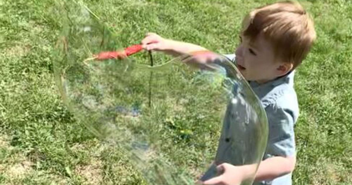 At the age of 3 it was harder Charlie to make the bubbles form and float away off the giant wand.