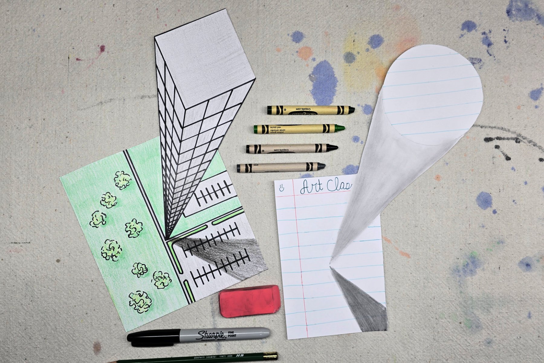Older school-aged kids will use one point perspective to practice drawing a 3D illusion in this fun project. This technique can easily be used at home or in the classroom.