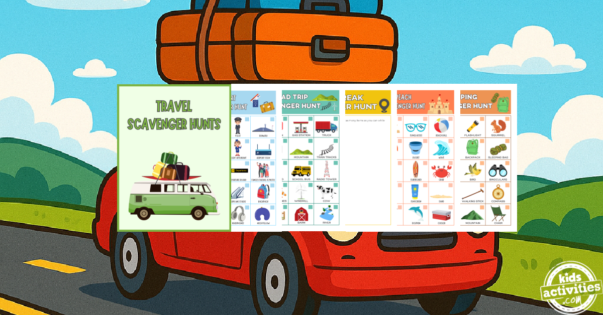 - Free Printable Travel Scavenger Hunt – see below to download & print scavenger hunt pages