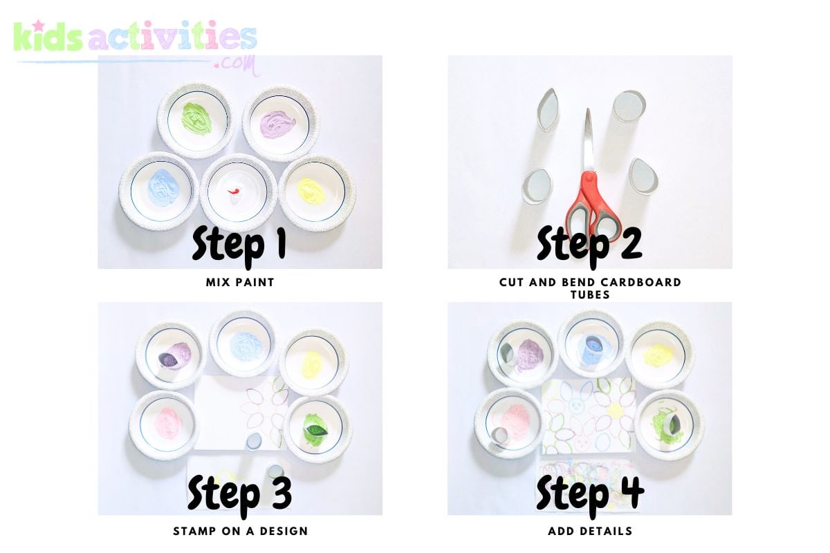 - Stamp on a design: Using the cardboard tubes as stamps, create a design or pattern.