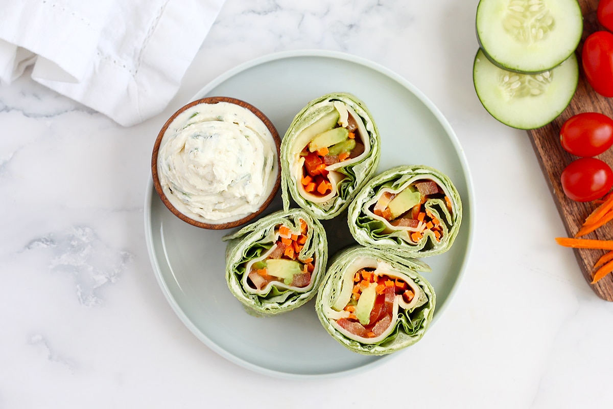 These wraps are also very popular with the adult crowd, thanks to the creamy and flavorful herbed cream cheese. I like to double or triple the recipe so I can have some on hand. It’s also delicious on crackers or toasted bagels! It adds so much flavor to these wraps and helps them hold together too. These wraps can be made ahead and are perfect for packed lunches. Healthy, simple, flavorful, and filling. Doesn’t get much better than that!